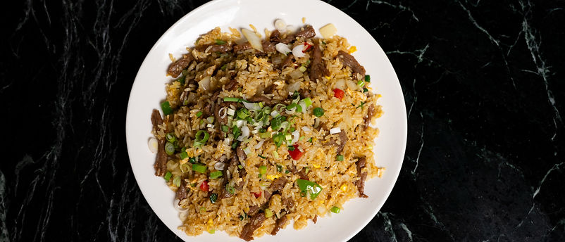 Tossed in a yellow curry sauce with egg, bell peppers, and onions.